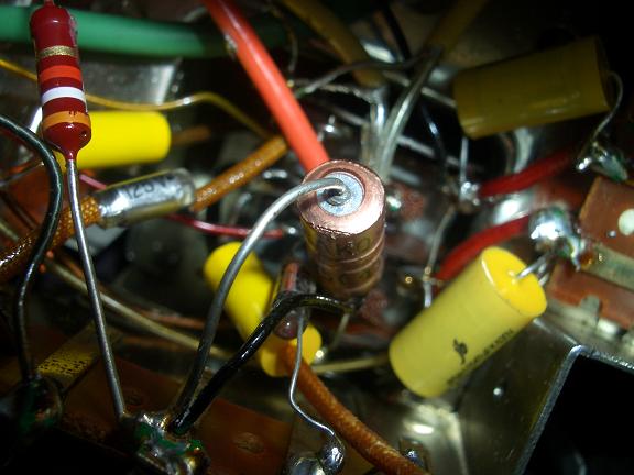Eenmaal uitgekast gaan we opzoek naar de gevreesde ERO rotjes om ze vakkundig te vervangen voor moderne typen. De ERO's zijn namelijk poreus en het vocht uit de lucht zorg voor een vervuild dielectrum zodat ze makkelijk doorslaan onder hoogspanning. Dit heeft waarschijnlijk ook het leven van de 2 aanwzige ECL86 eindbuizen gekost.